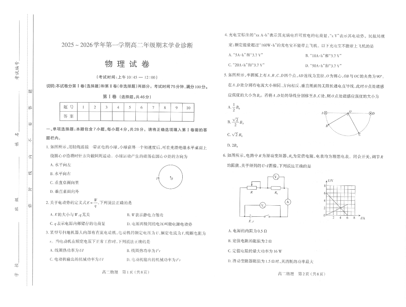 太原市2025-2026学年高二年级第一学期期末学业诊断 物理.pdf