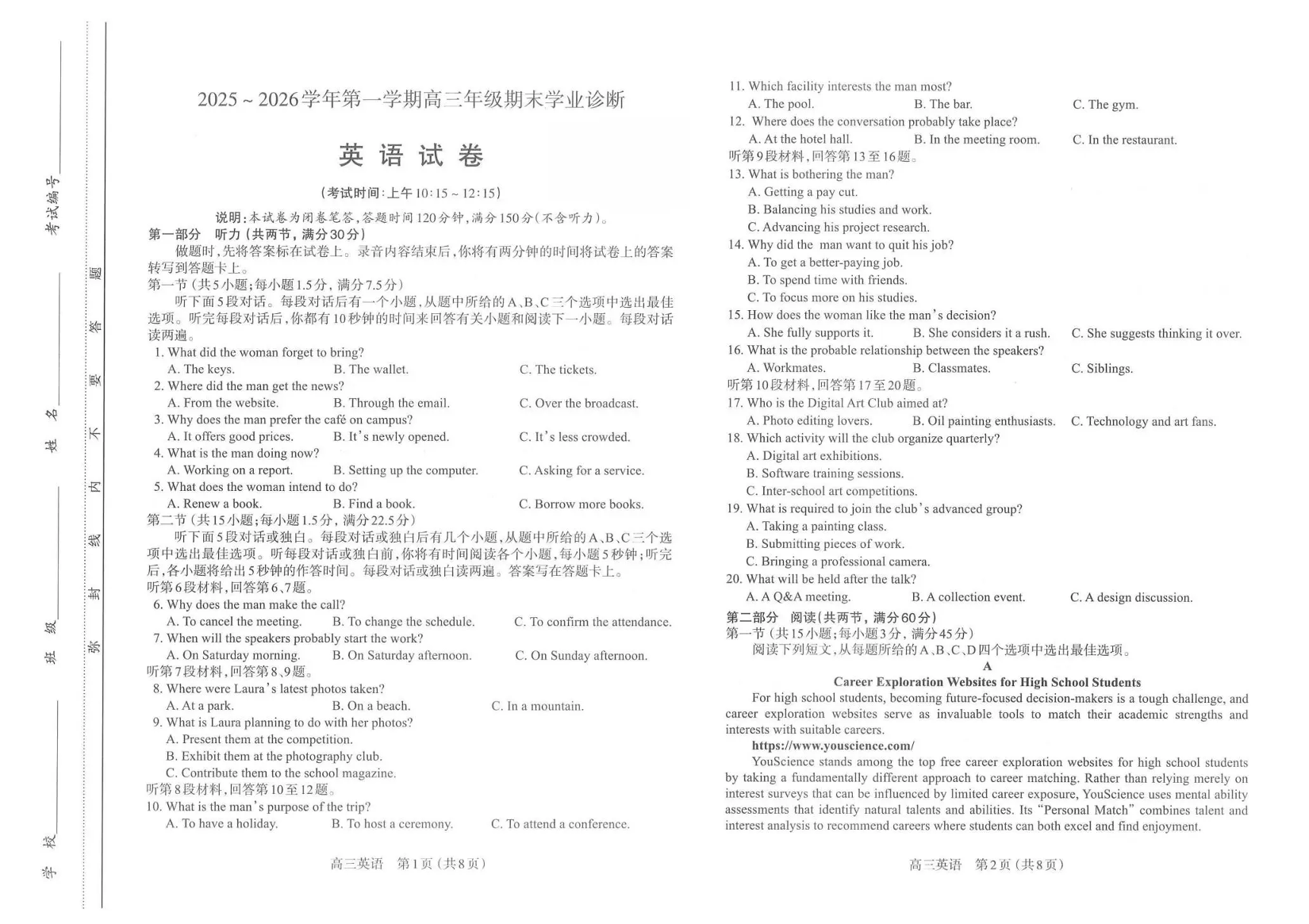 太原市2025~2026学年第一学期高三年级期末学业诊断 英语.pdf