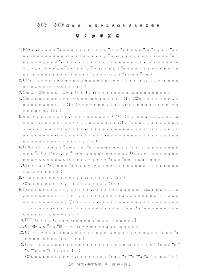 江西省2025一2026学年高一年级上学期学科期末素养训练 语文答案.pdf