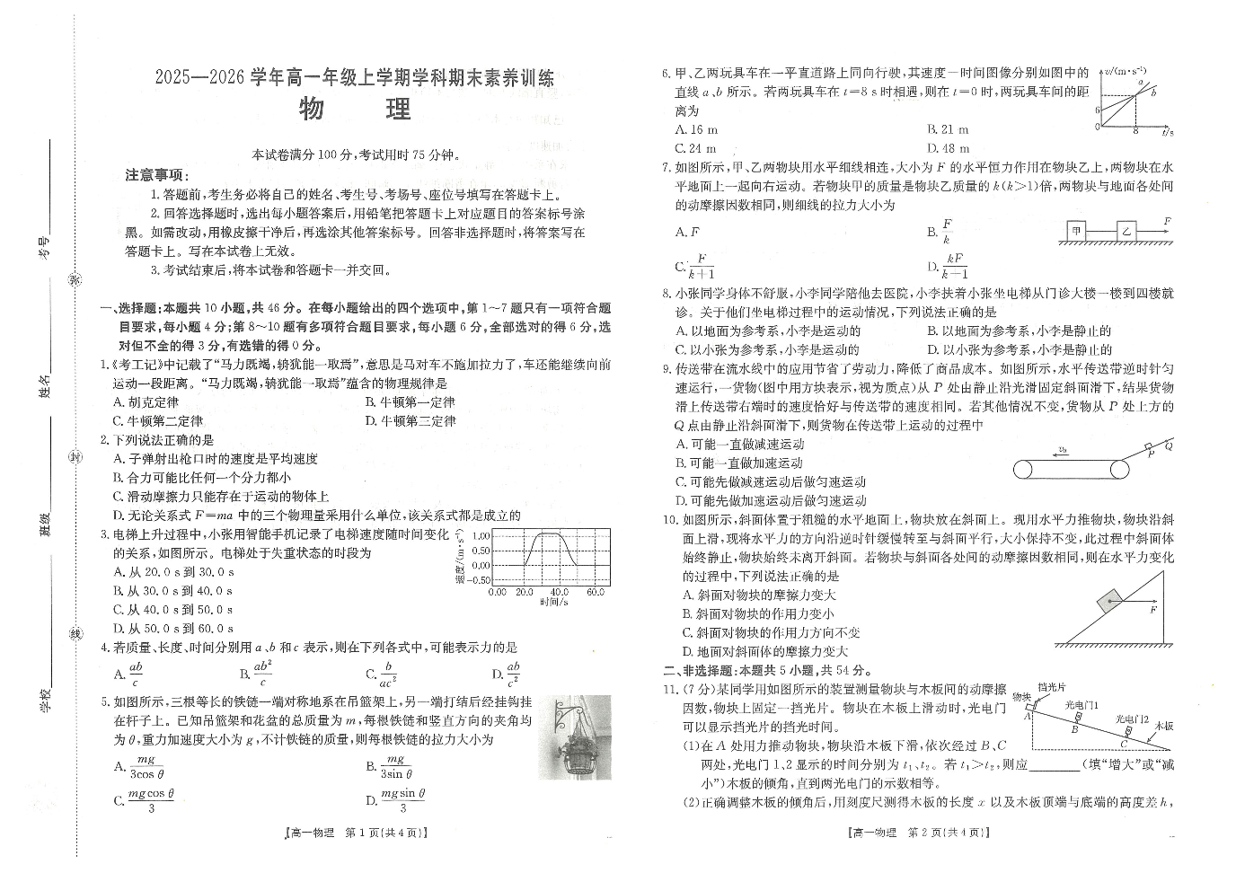 江西省2025一2026学年高一年级上学期学科期末素养训练 物理.pdf