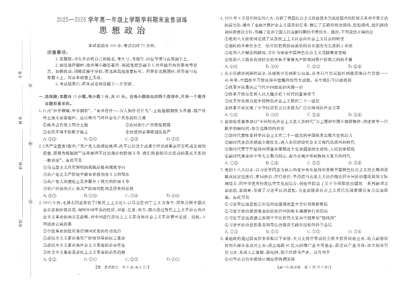 江西省2025一2026学年高一年级上学期学科期末素养训练 思想政治.pdf