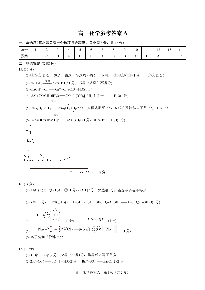 化学答案A·安徽省皖江名校联盟2025-2026学年上学期高一期末考试.pdf