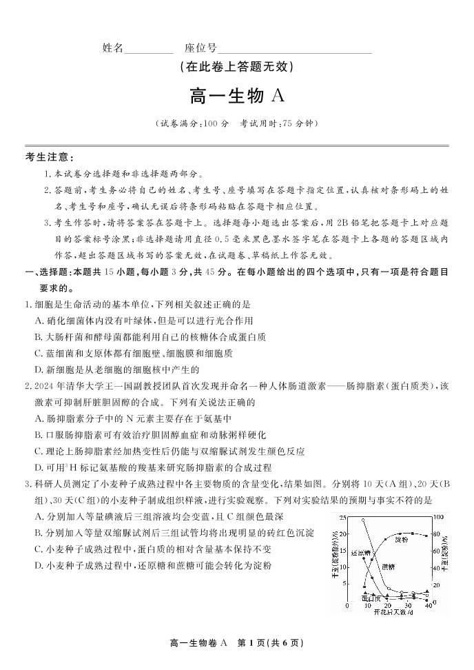 生物试题A·安徽省皖江名校联盟2025-2026学年上学期高一期末考试.pdf