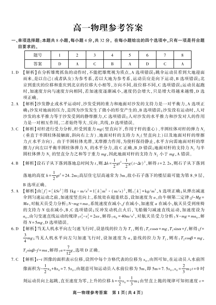 物理答案·安徽省皖江名校联盟2025-2026学年上学期高一期末考试.pdf