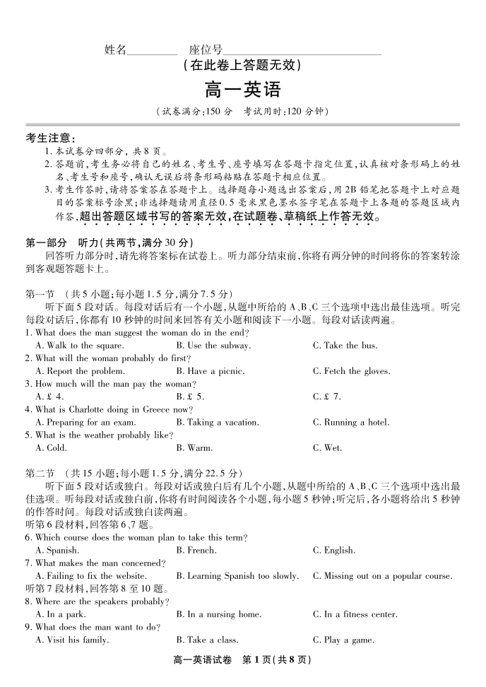 英语试题·安徽省皖江名校联盟2025-2026学年上学期高一期末考试.pdf