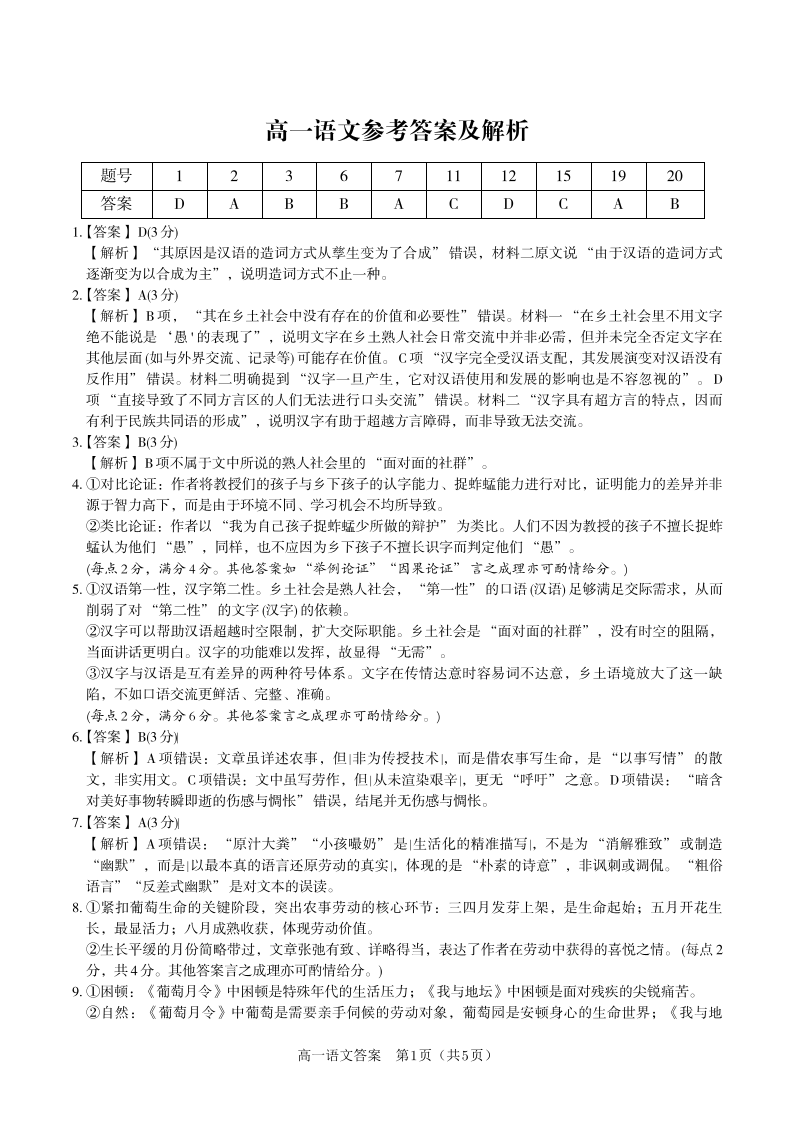 语文答案·安徽省皖江名校联盟2025-2026学年上学期高一期末考试.pdf