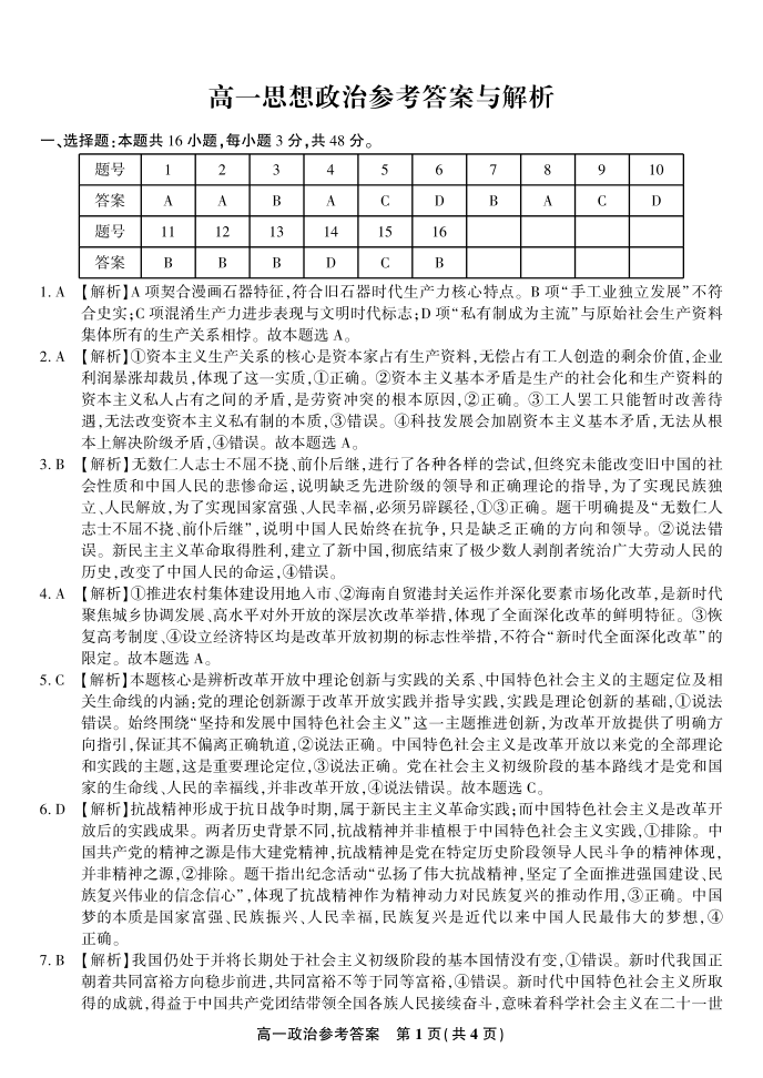 政治答案·安徽省皖江名校联盟2025-2026学年上学期高一期末考试.pdf