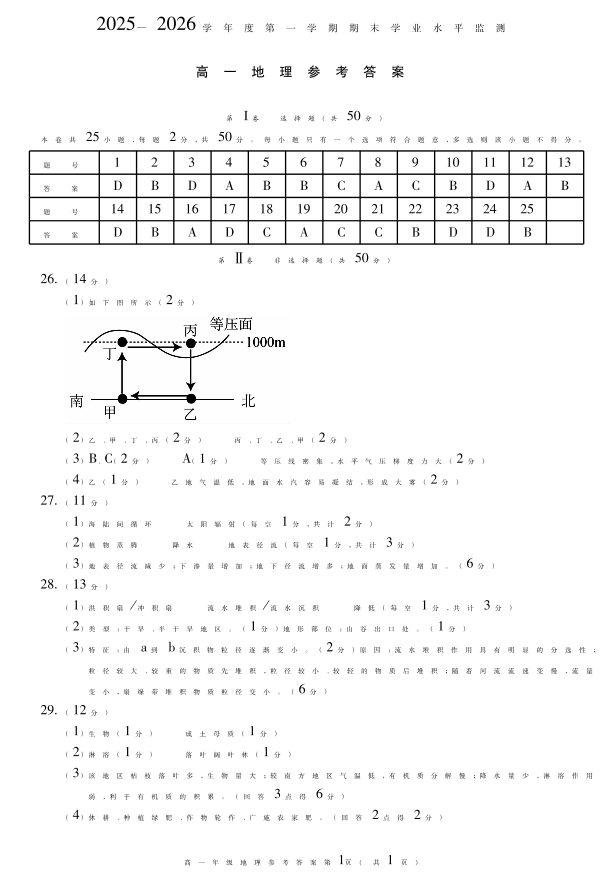 蚌埠市2025-2026学年度第一学期高一期末学业水平监测 地理答案.pdf