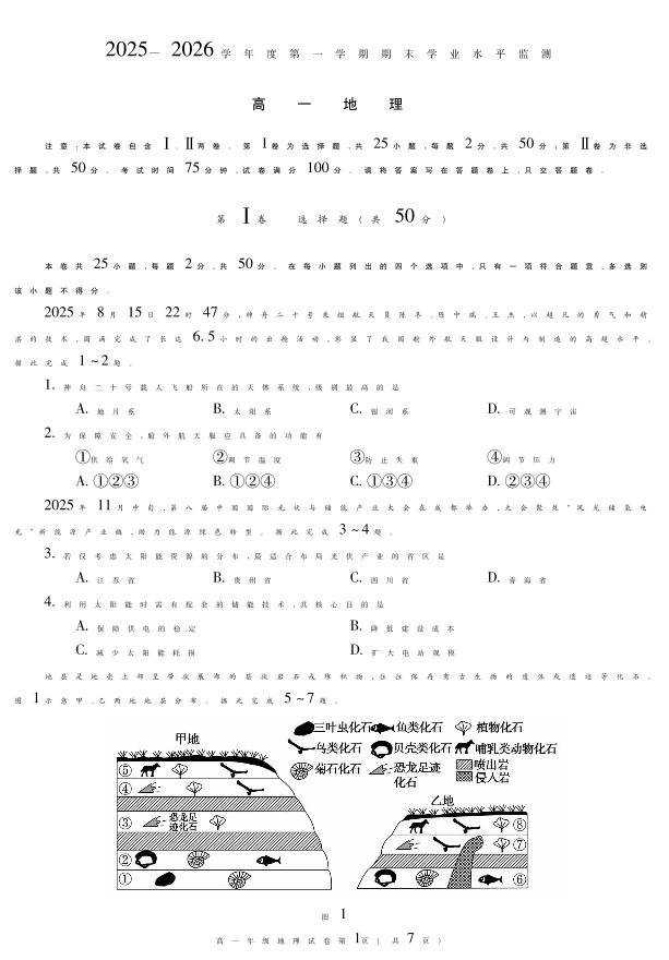 蚌埠市2025-2026学年度第一学期高一期末学业水平监测 地理.pdf