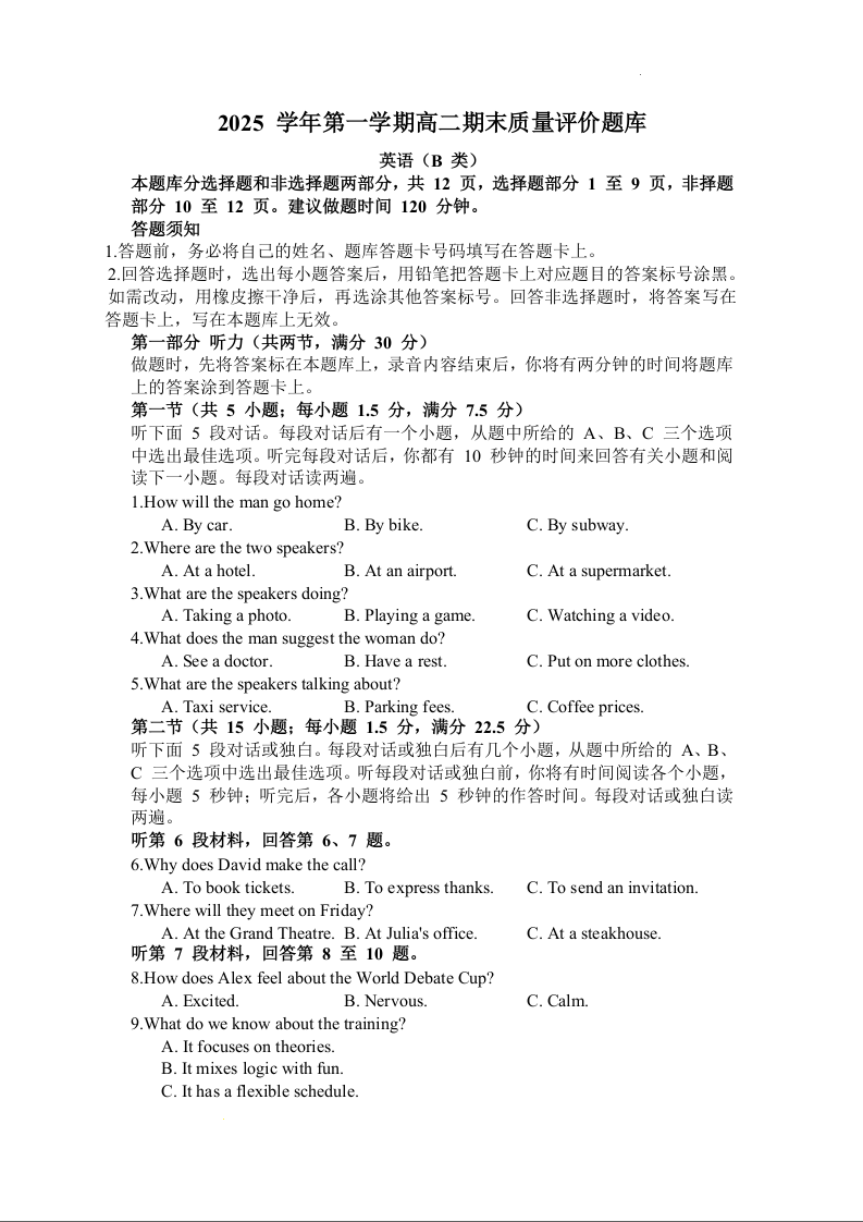 浙江省温州市2025学年第一学期高二年级期末质量评价题库(B类)英语.docx