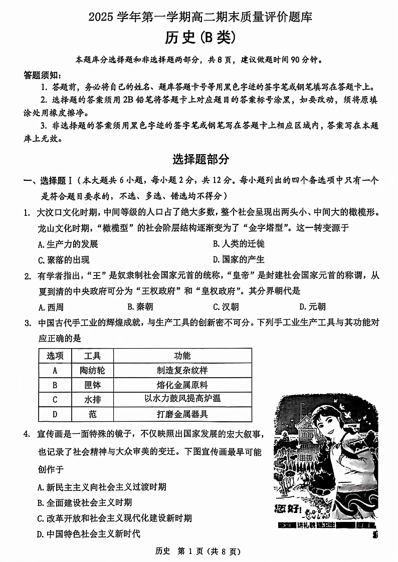 浙江省温州市2025学年第一学期高二年级期末质量评价题库(B类)历史.pdf
