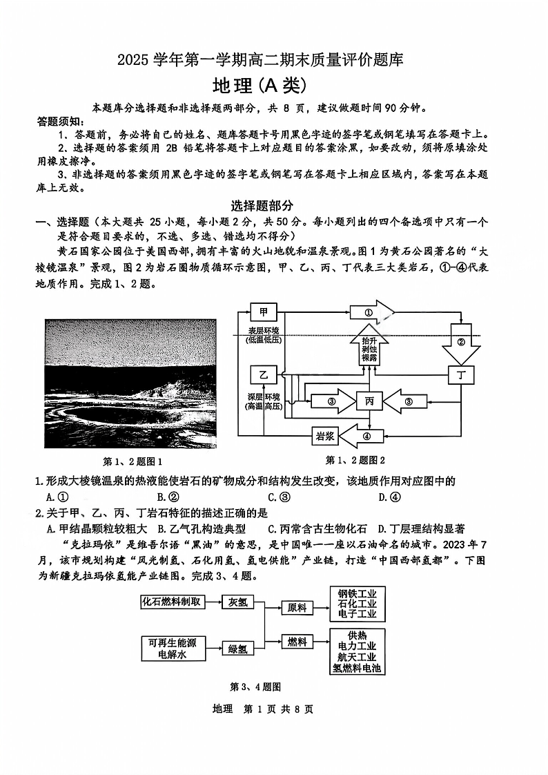 浙江省温州市2025学年第一学期高二年级期末质量评价题库(A卷)地理.pdf