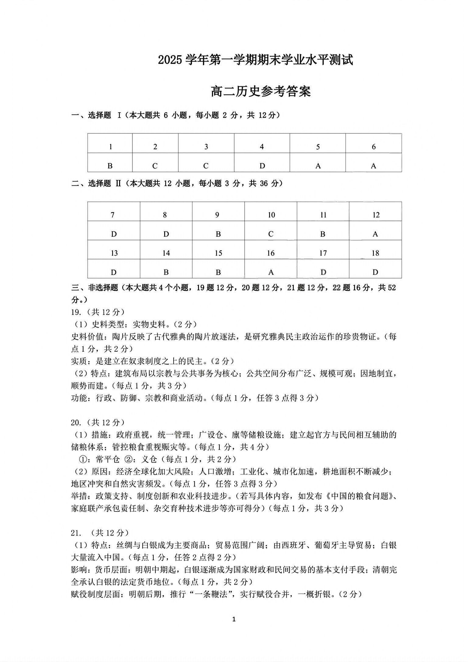 浙江省杭州市2025学年第一学期高二年级期末学业水平测试 历史答案.pdf
