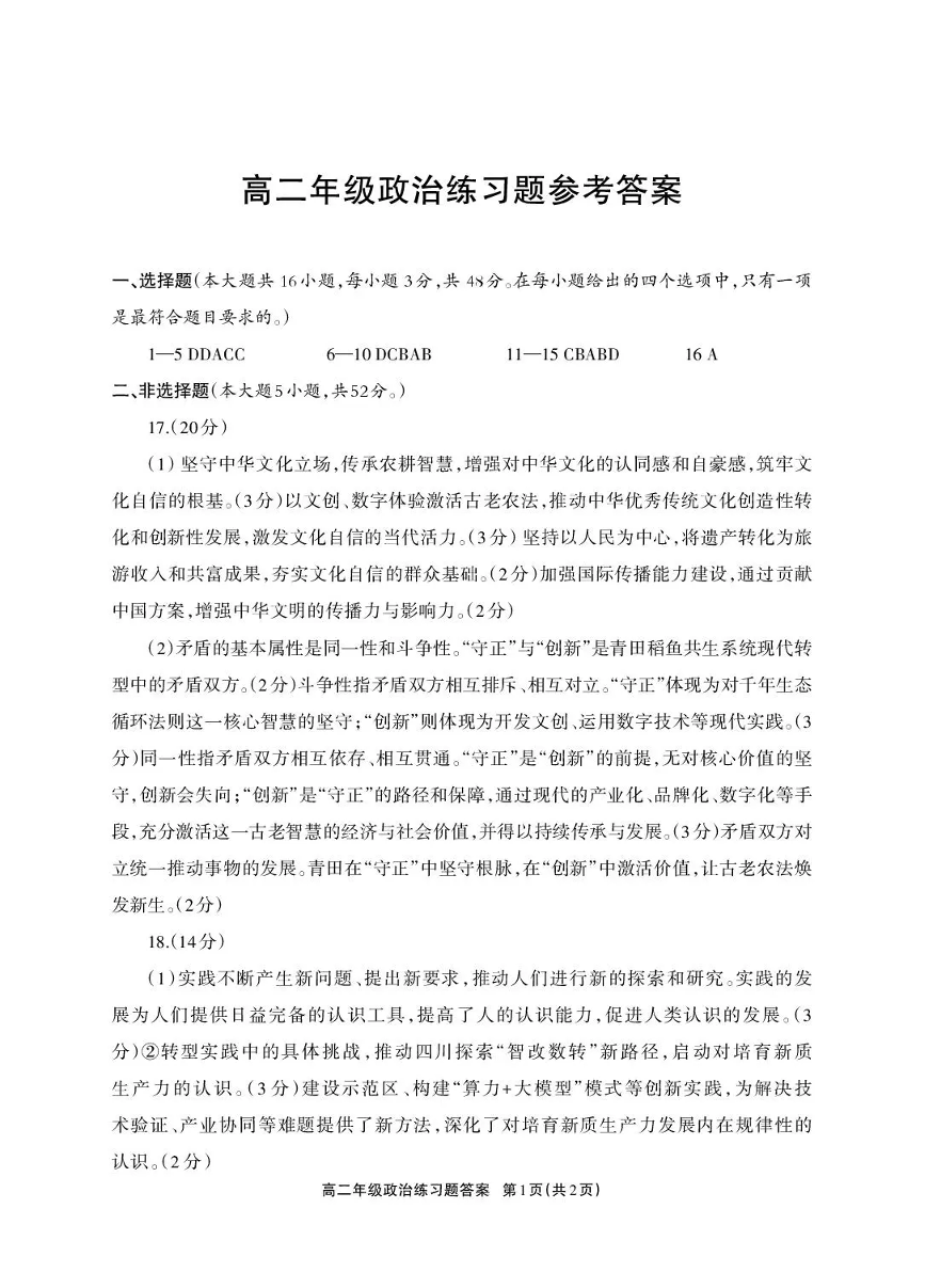德阳市2025—2026学年高二上学期期末考试 政治答案.pdf