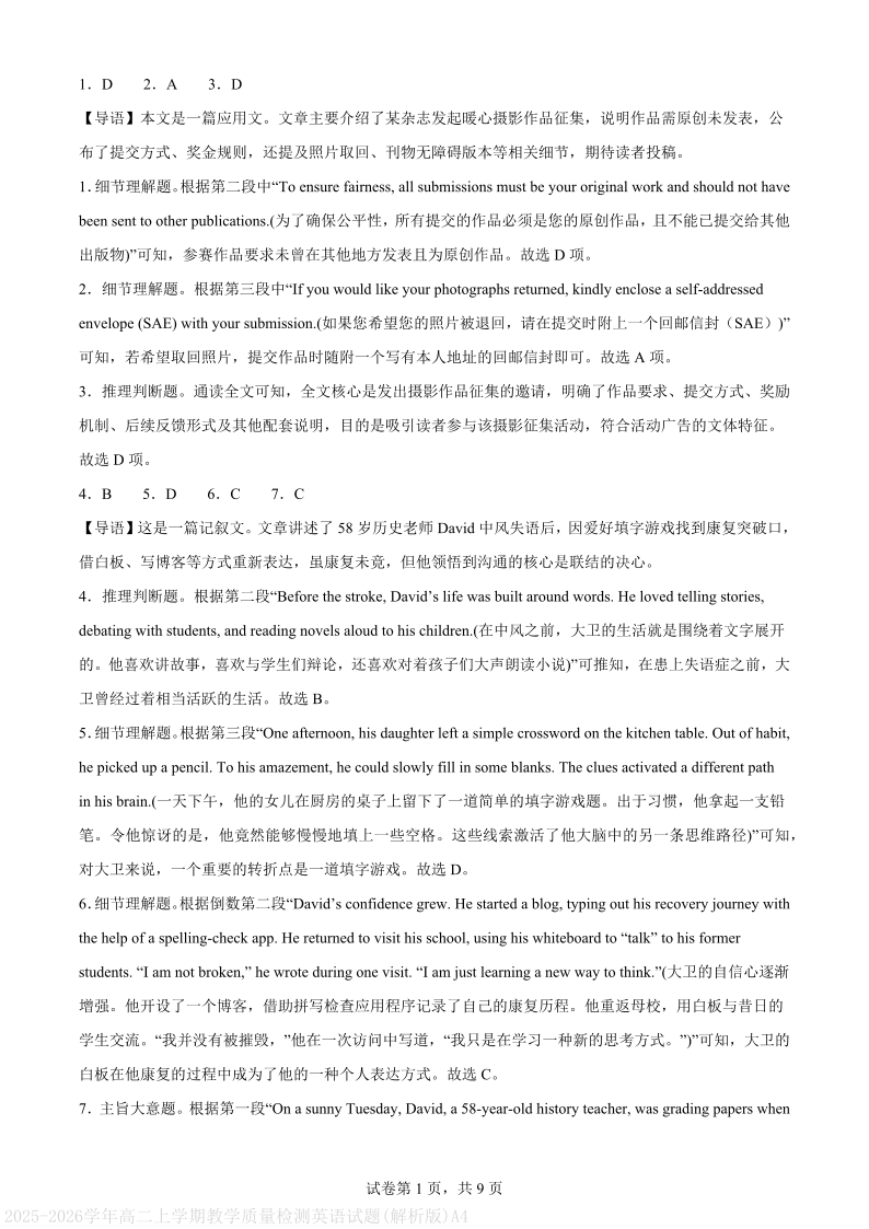 德阳市2025—2026学年高二上学期期末考试 英语答案.pdf