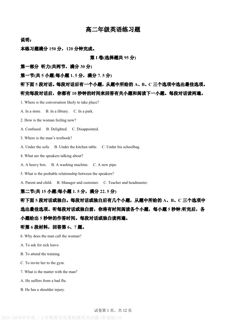 德阳市2025—2026学年高二上学期期末考试 英语.pdf