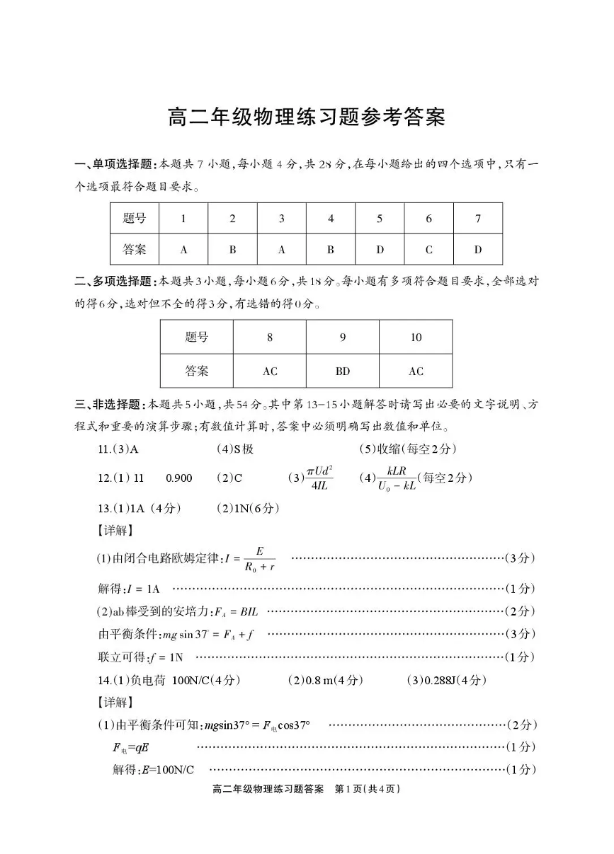 德阳市2025—2026学年高二上学期期末考试 物理答案.pdf