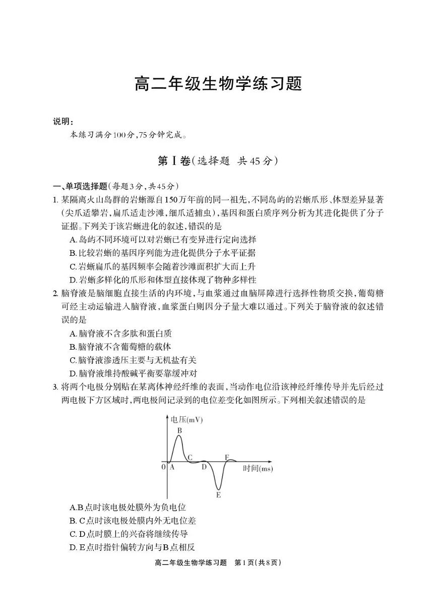 德阳市2025—2026学年高二上学期期末考试 生物.pdf