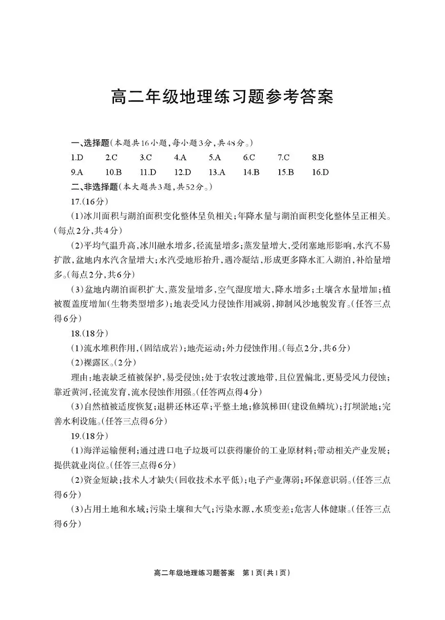 德阳市2025—2026学年高二上学期期末考试 地理答案.pdf