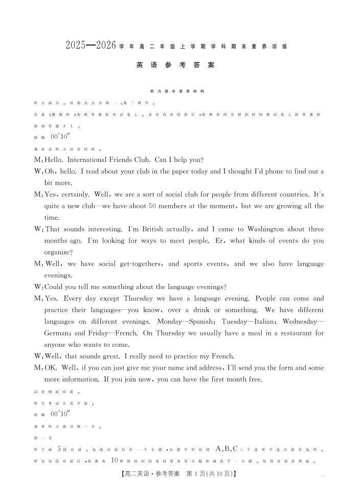 江西省2025一2026学年高二年级上学期学科期末素养训练 英语答案.pdf
