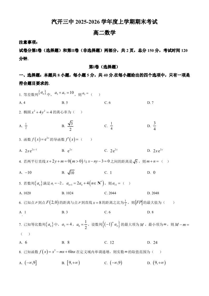 吉林省长春市长春汽开三中2025-2026学年高二上学期期末考试 英语试题(含答案).pdf