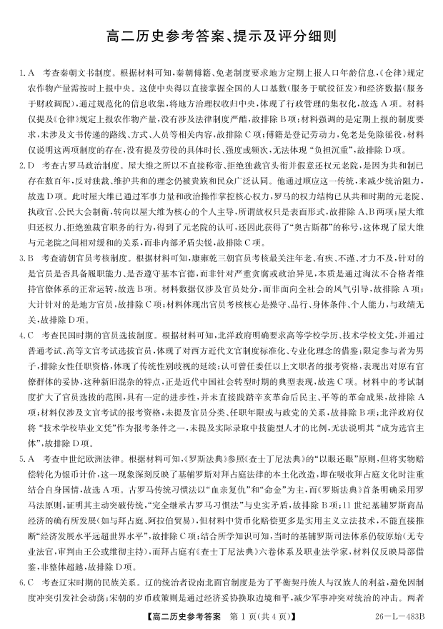 安徽省江淮名校2025-2026学年高二上学期期末联考 历史答案.pdf