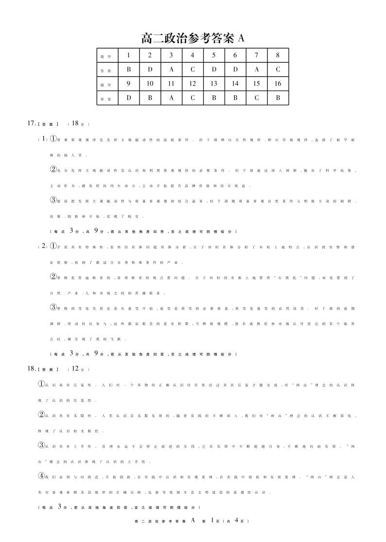 安徽省鼎尖联考2025-2026学年高二上学期过程性学科素质评价 政治A卷答案.pdf