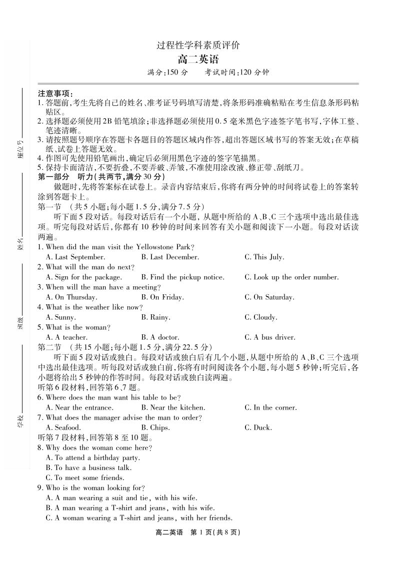 安徽省鼎尖联考2025-2026学年高二上学期过程性学科素质评价 英语.pdf
