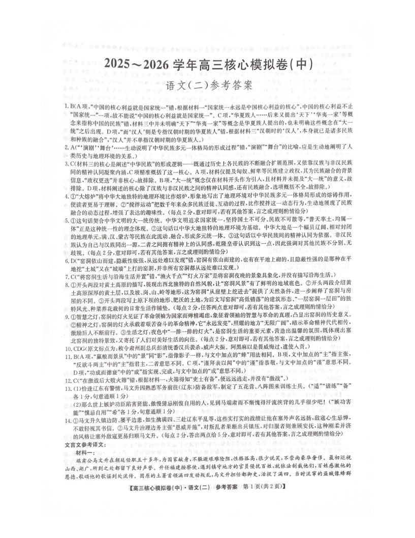 2025~2026学年高三核心模拟卷(中)语文答案.pdf