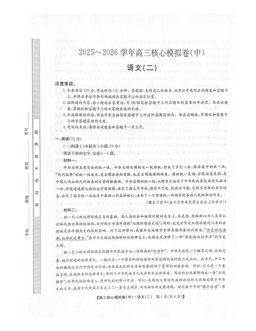2025~2026学年高三核心模拟卷(中)语文.pdf