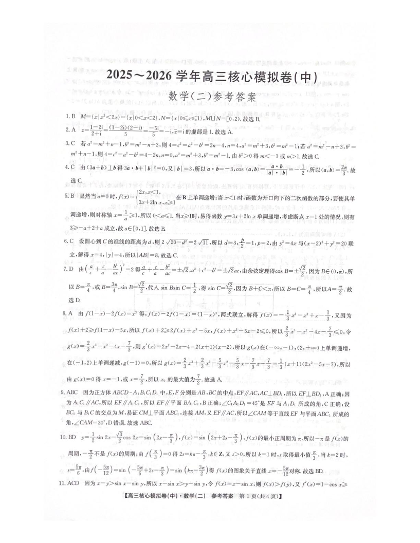 2025~2026学年高三核心模拟卷(中)数学答案.pdf