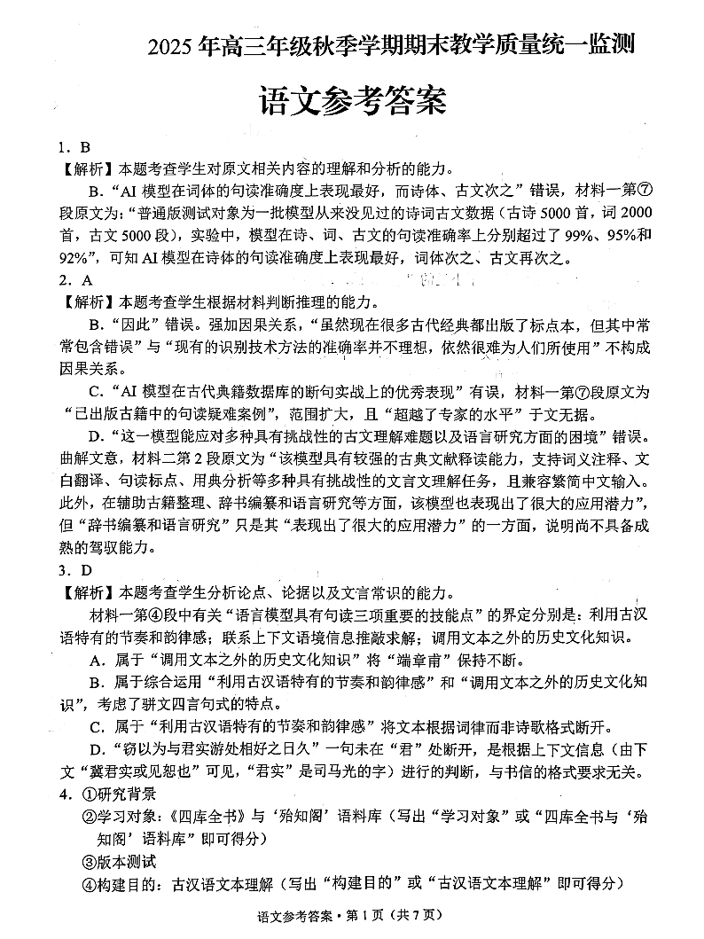 云南德宏傣族景颇族自治州2025年高三年级秋季学期期末教学质量统一监测 语文答案.pdf