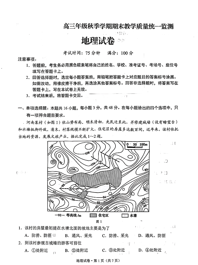 云南德宏傣族景颇族自治州2025年高三年级秋季学期期末教学质量统一监测 地理.pdf