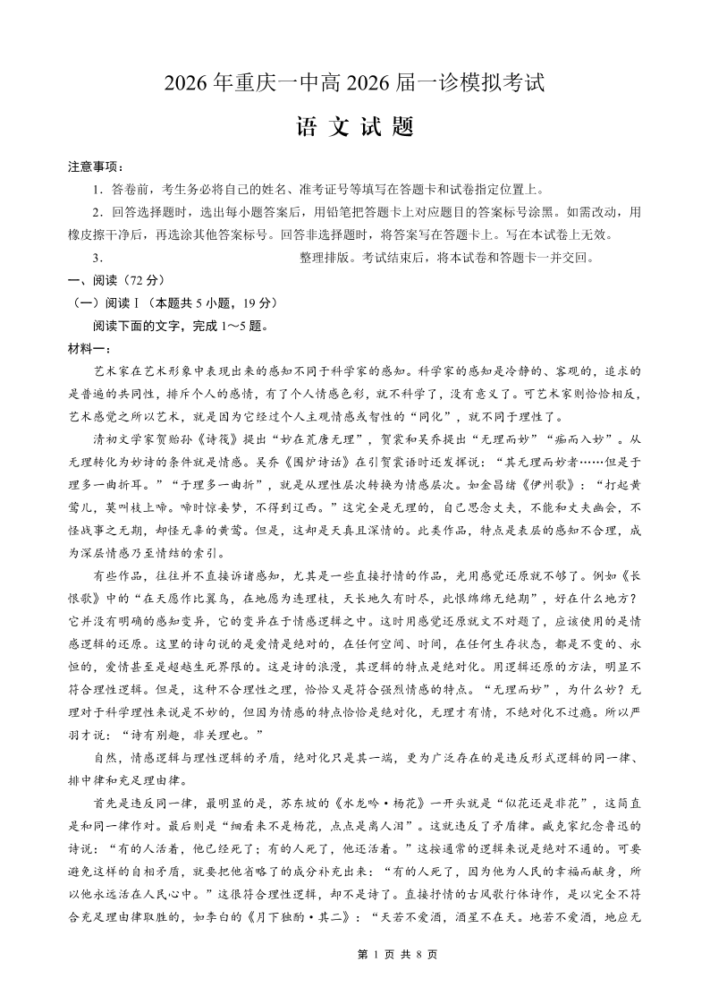 重庆一中高2026届一诊模拟考试 语文.pdf