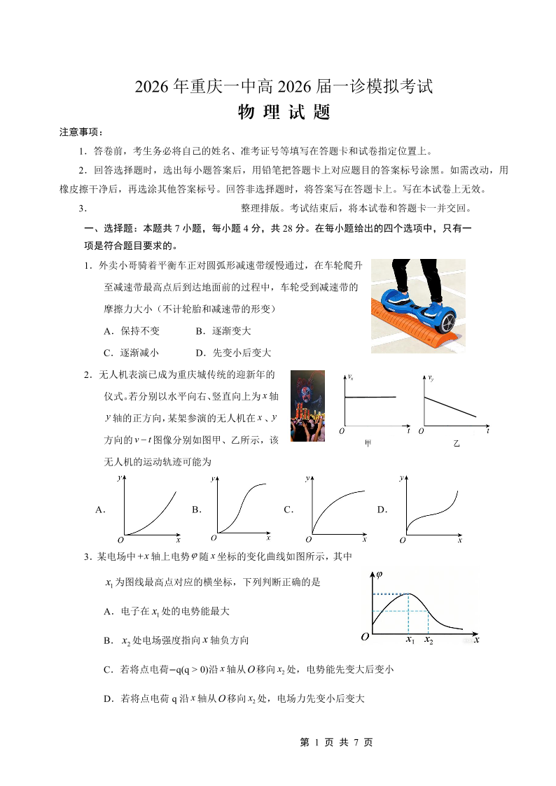 重庆一中高2026届一诊模拟考试 物理.pdf
