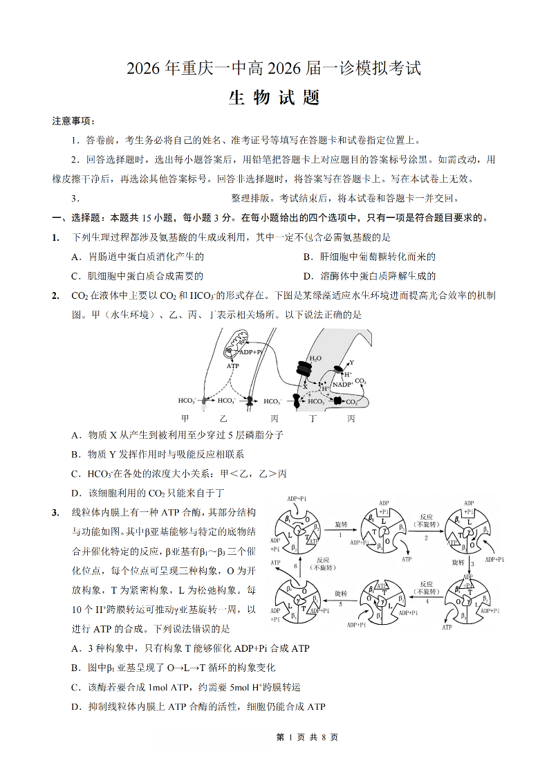 重庆一中高2026届一诊模拟考试 生物.pdf