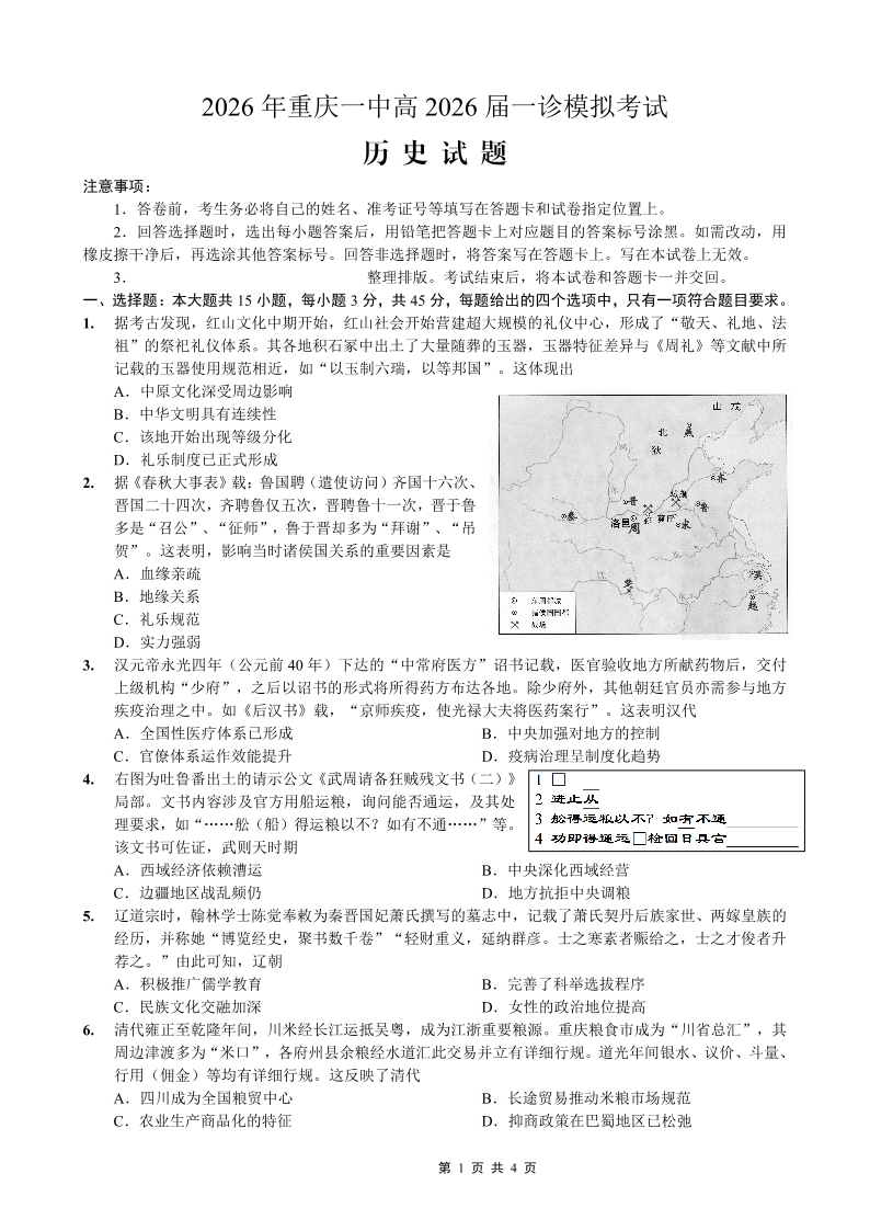 重庆一中高2026届一诊模拟考试 历史.pdf