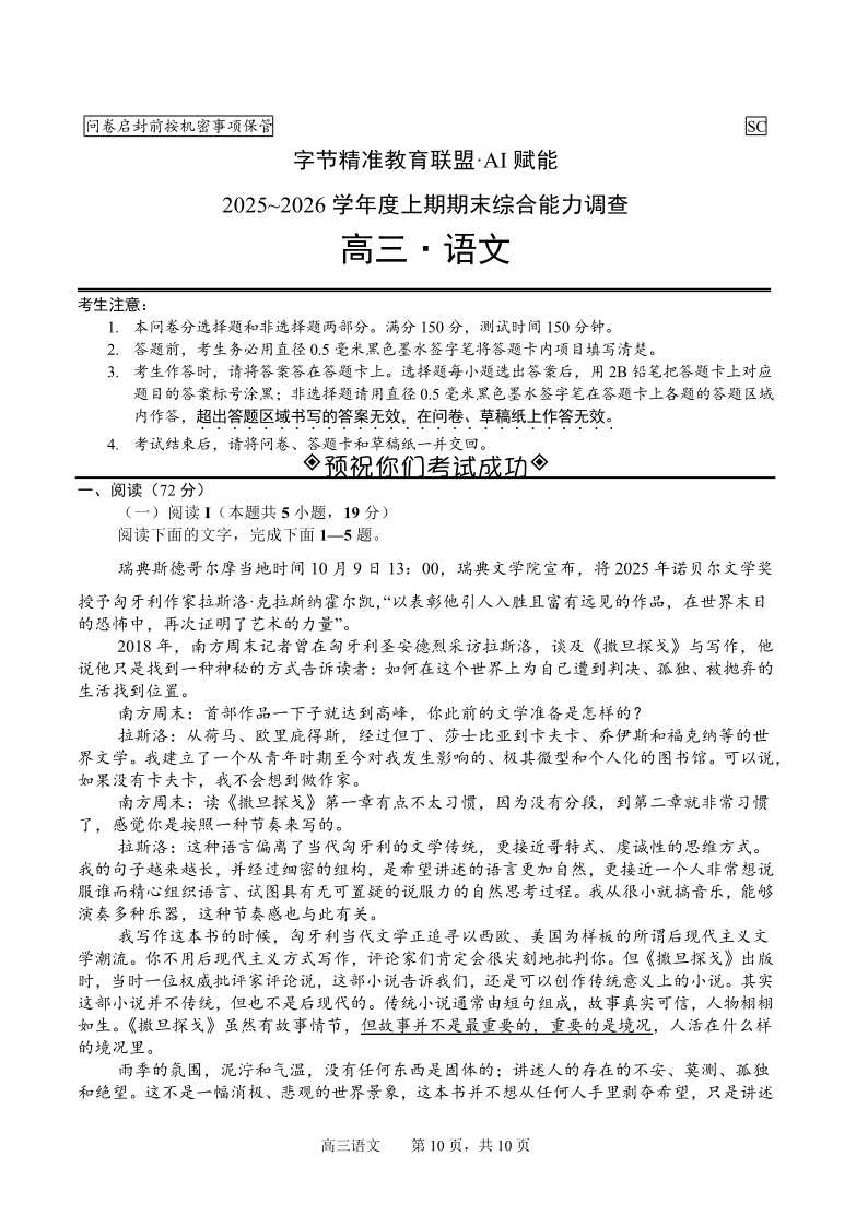 字节精准教育联盟·AI赋能2025~2026学年度上期期末综合能力调查 语文试题(含答案).pdf
