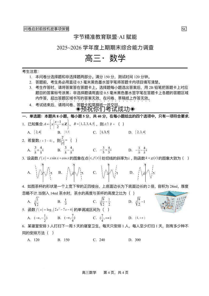 字节精准教育联盟·AI赋能2025~2026学年度上期期末综合能力调查 数学试题(含答案).pdf