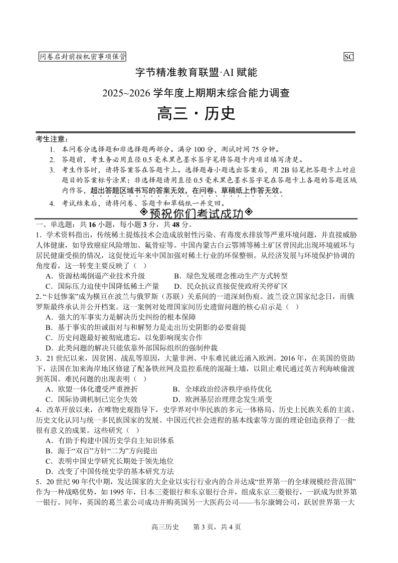 字节精准教育联盟·AI赋能2025~2026学年度上期期末综合能力调查 历史试题(含答案).pdf