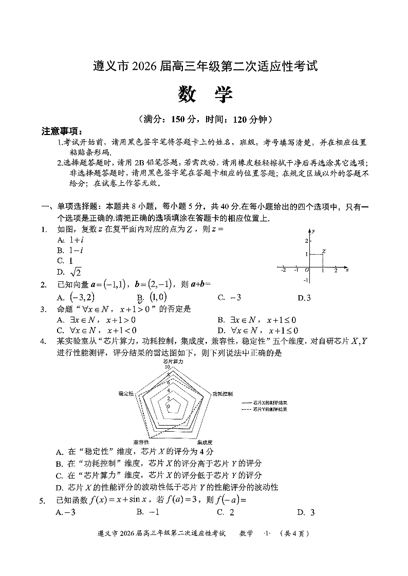 遵义市2026届高三年级第二次适应性考试 数学.pdf
