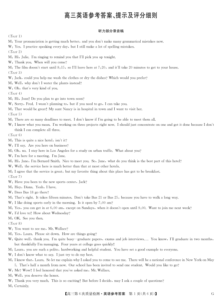 英语答案-第6次质量检测(G).pdf