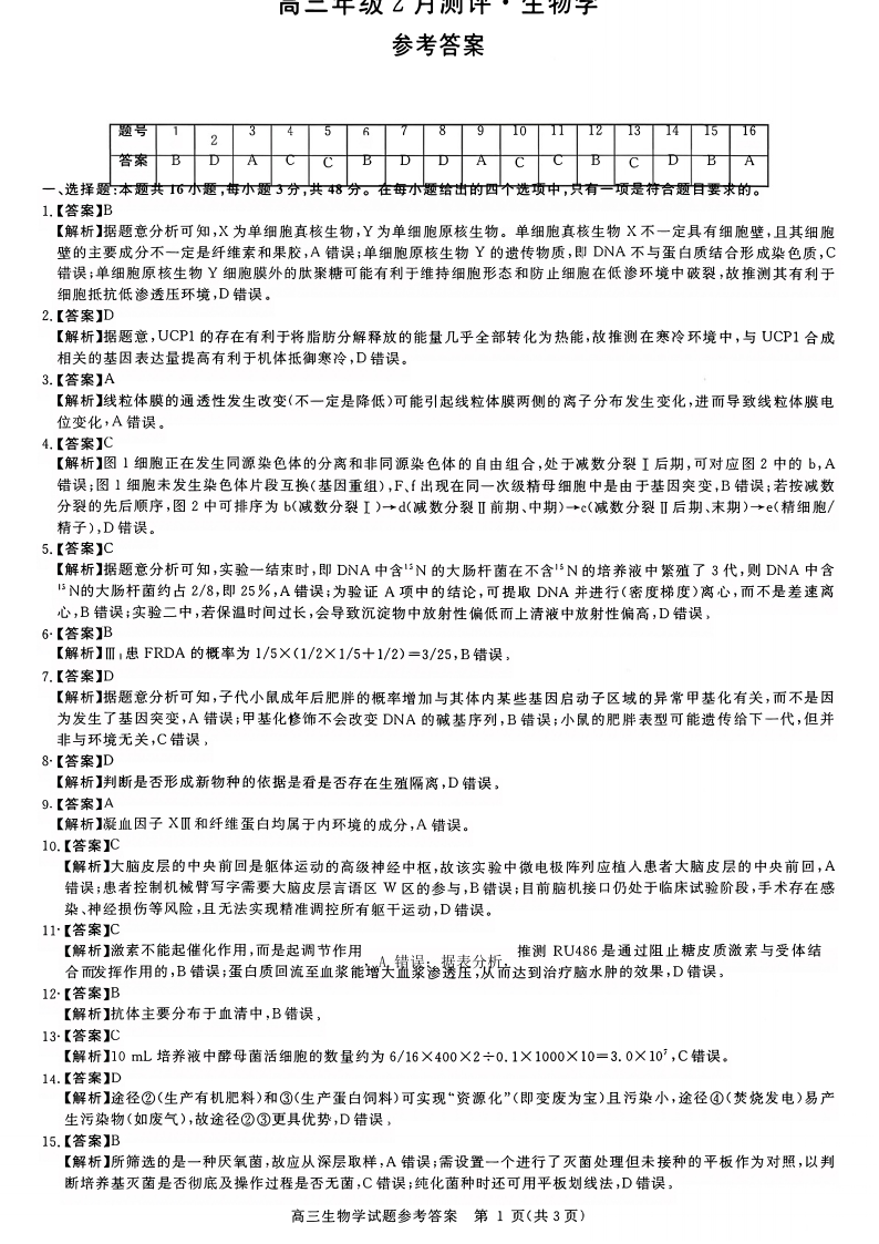 河南省新未来2026届高三年级上学期2月期末测评 生物答案.pdf
