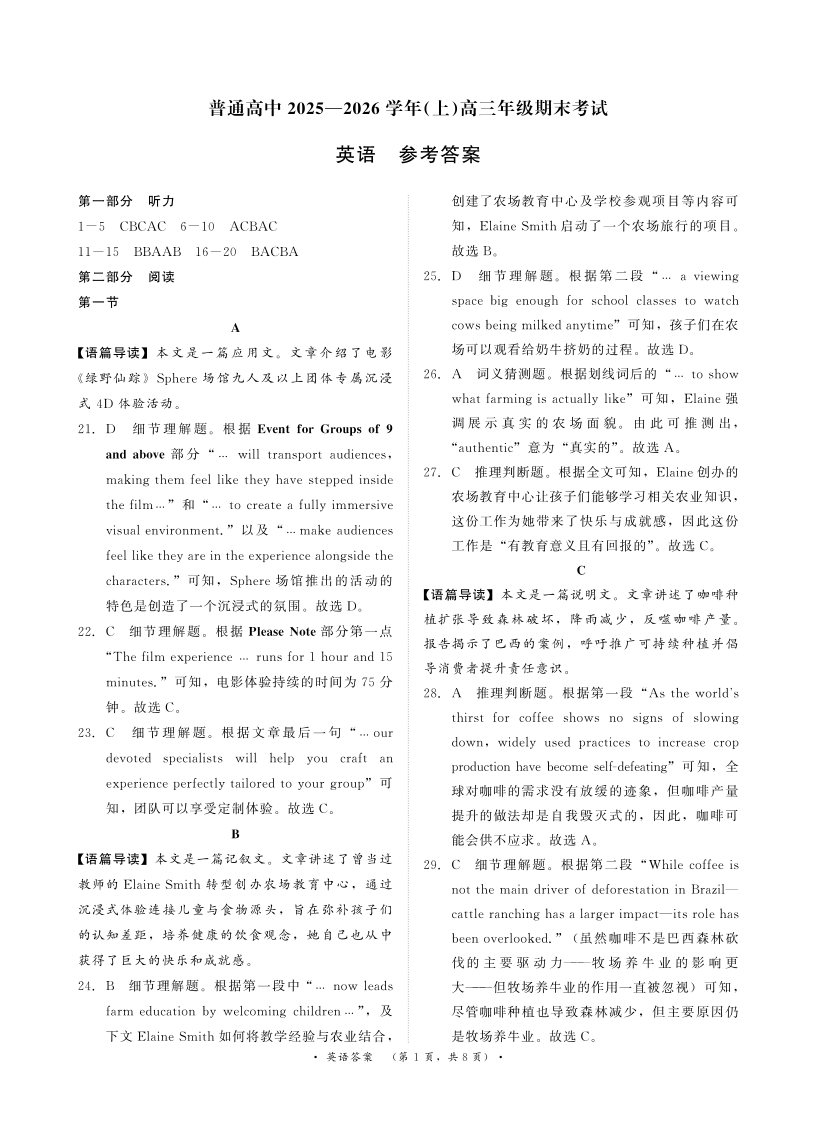 普通高中2025-2026学年(上)高三年级期末考试 英语答案.pdf