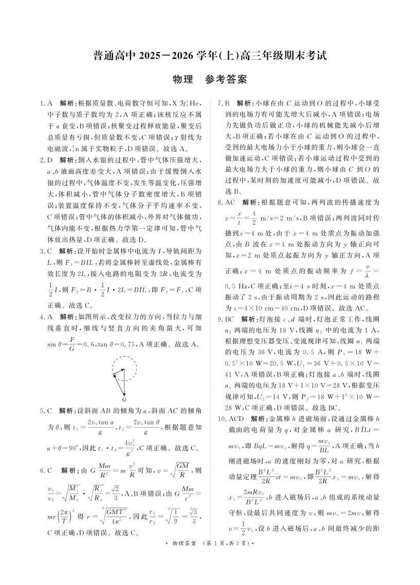 普通高中2025-2026学年(上)高三年级期末考试 物理答案.pdf
