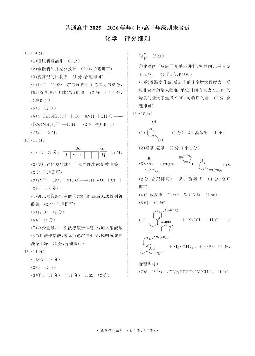 普通高中2025-2026学年(上)高三年级期末考试 化学评分细则.pdf