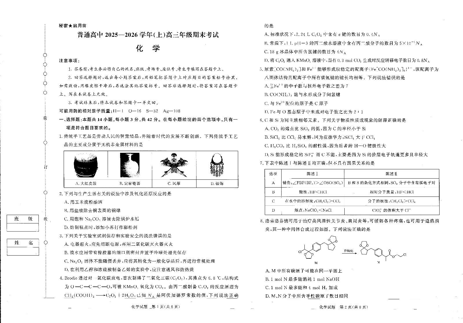 普通高中2025-2026学年(上)高三年级期末考试 化学.pdf