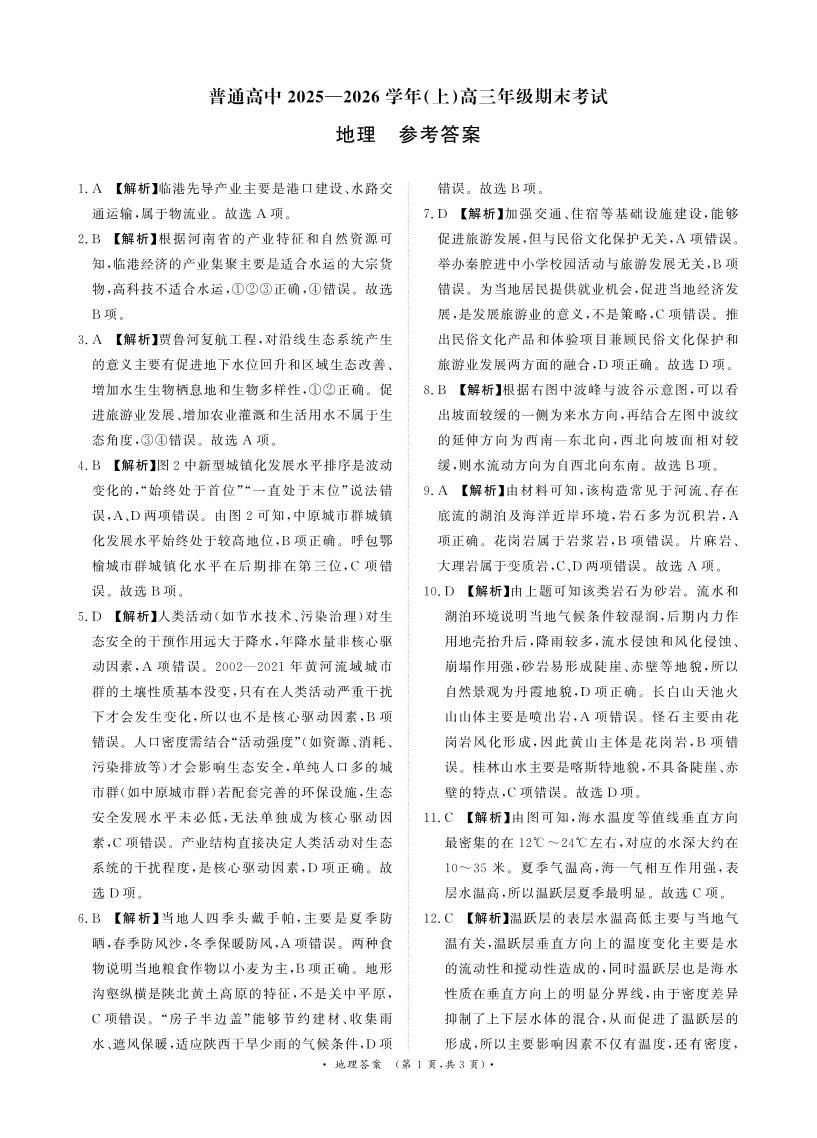 普通高中2025-2026学年(上)高三年级期末考试 地理答案.pdf