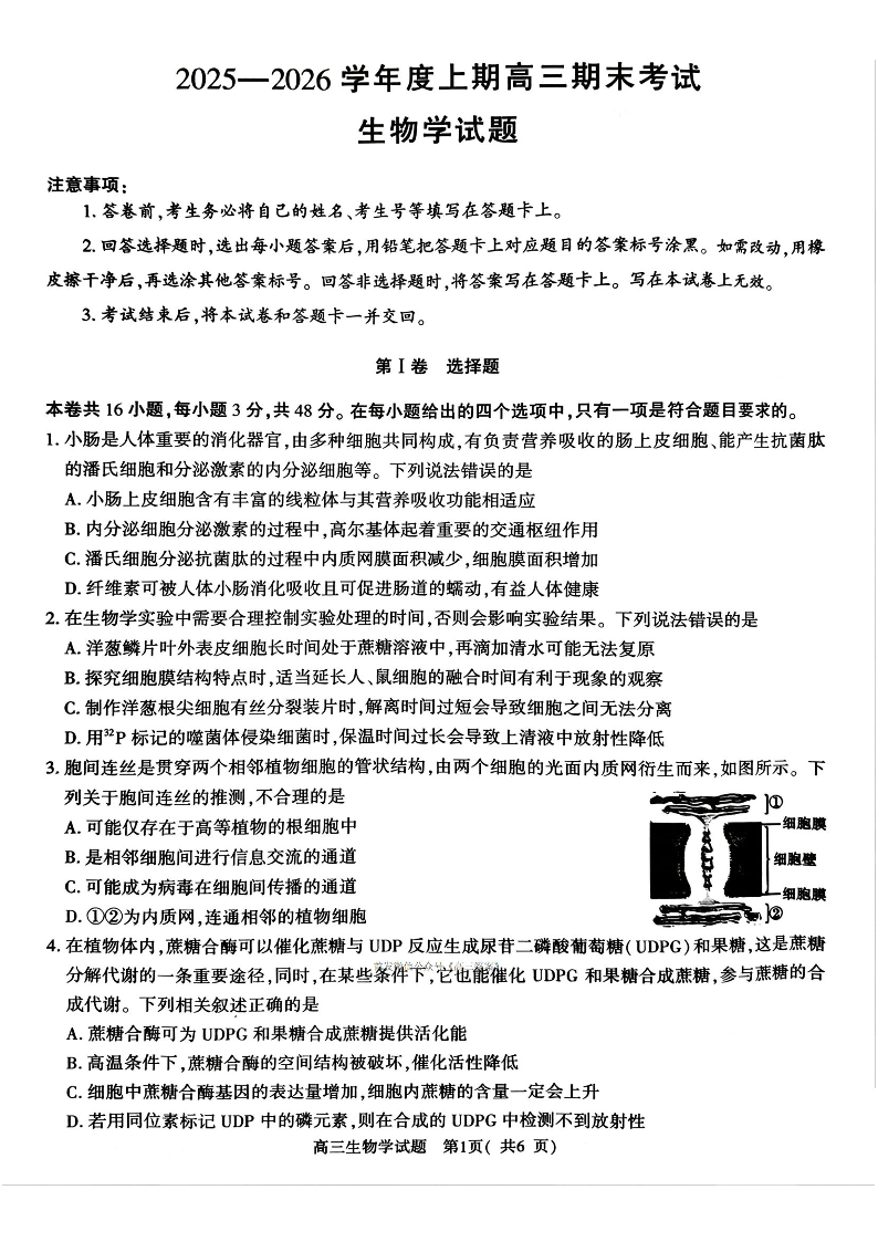 河南省信阳市2025-2026学年度上期高三期末考试 生物试题(含答案).pdf