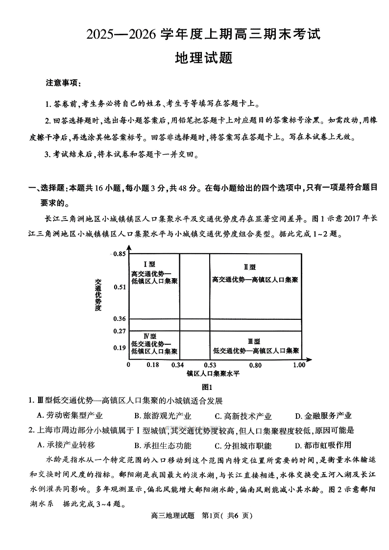 河南省信阳市2025-2026学年度上期高三期末考试 地理试题(含答案).pdf